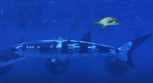 Αυτή η μη επανδρωμένη μηχανή έχει το μήκος καρχαρία. Είναι 1,5 μέτρο και ζυγίζει 45 κιλά. Όπως ένα πραγματικό ψάρι, το ρομπότ χρησιμοποιεί την ουρά για να κινήσει και να ελέγξει την κίνησή του. Το ρομπότ κινείται με τρόπο ψαρέματος, οπότε είναι πολύ δύσκολο να το διακρίνεις ή τουλάχιστον να τον απομονώνεις στο φόντο μιας πραγματικής θαλάσσιας πανίδας. Μπορεί να κολυμπήσει πάνω και να βουτήξει σε βάθος. Αυτός ο καρχαρίας μπορεί να είναι πλησιάσει σε εχθρικό πλοίο απαρατήρητος. Μπορεί να κατασκοπεύσει, να επισκευάσει τα πλοία και να δημιουργήσει δολιοφθορά.